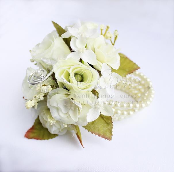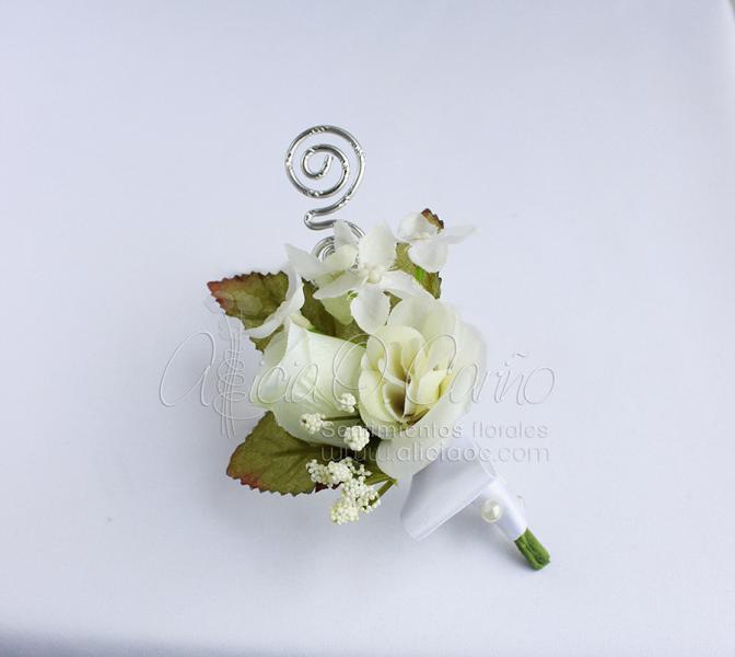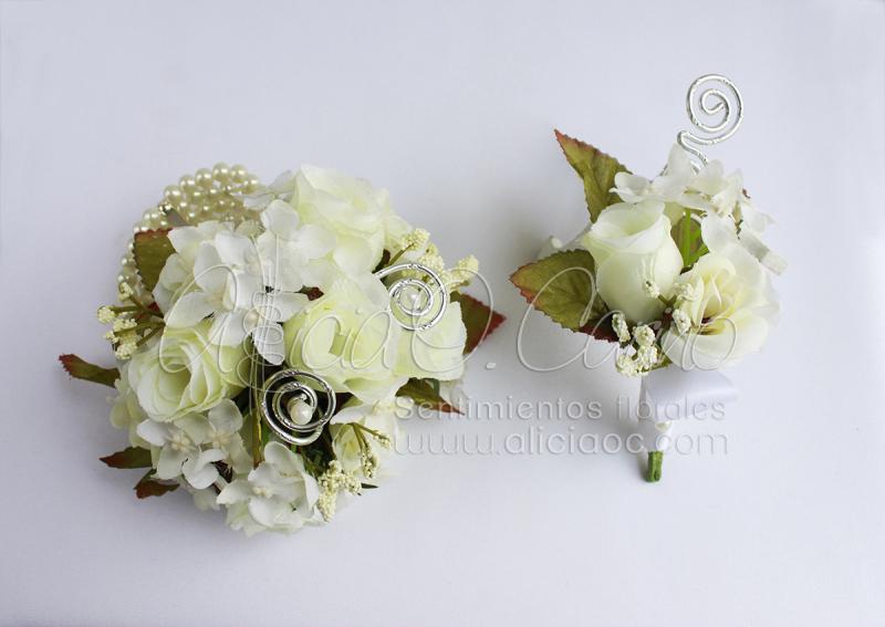 Para su enlace civil, Dulce y Jesús optaron por accesorios de flor artificial.